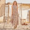 Enjoy the everyday in relaxed style with this halter neck dress with tropical inspired abstract hand blocked prints. Keyhole back with tie closure. two tiers with ruffle details. Cotton. Hand wash. Imported. Sundance exclusive. Sizes XS (0-2). S (4-6). M (8-10). L (12-14). XL (16-18). XXL (20-22). Approx. 49.5l.